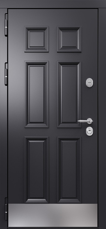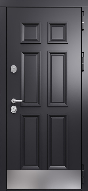 Входная дверь с МДФ №566 создана для тех, кто ценит прочность металла и уютный внешний вид в одном решении. Она одинаково хорошо вписывается в частный дом, квартиру или офис, подчеркивая солидность пространства и обеспечивая надежную защиту. Каркас и полотно собраны из профильных труб, усиленных ребрами жесткости, а стальной лист толщиной 2 мм гарантирует устойчивость к взлому и длительный срок службы. С обеих сторон дверь облицована МДФ панелями с ПВХ-покрытием, что делает поверхность более устойчивой к истиранию и мелким повреждениям, сохраняя привлекательность даже при интенсивной эксплуатации. Панели легко очищаются и не выгорают на солнце, благодаря чему дверь подходит и для уличной установки. Два контура уплотнения надежно защищают от сквозняков и посторонних запахов, а при необходимости можно дополнительно усилить конструкцию тепло- и шумоизоляцией. Модель №566 сочетает в себе сдержанный дизайн и функциональность, делая ее практичным выбором для самых разных помещений. Входная дверь с МДФ №566 от производителя: быстрое изготовление и монтаж в Пушкино, индивидуальные размеры, широкий выбор материалов и фурнитуры, официальная гарантия до 10 лет.