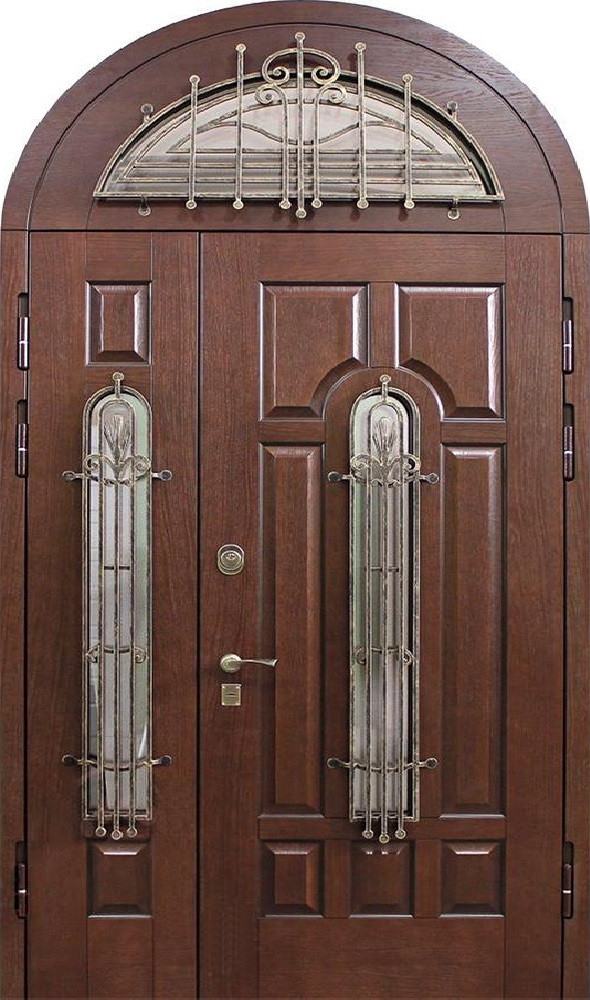 Арочные конструкции всегда придают входу выразительность и особый статус, а если добавить две створки и стеклянные вставки, дверь превращается в центральный элемент фасада. Натуральное дерево в отделке подчеркивает солидность и гармонично сочетается с металлом, из которого выполнено основание: каркас и полотно из профильных труб и стальной лист толщиной 2 мм обеспечивают прочность и долговечность. Для удобства и безопасности используются два замка разного типа — сувальдный и цилиндровый, оба с тремя ригелями, что делает взлом крайне затруднительным. Двухстворчатая арочная дверь со стеклом в частный дом №14 может изготавливаться любого размера и адаптироваться под архитектуру конкретного здания. Возможна установка дополнительных элементов: зеркало, стеклопакет, кованые детали или даже видеодомофон. Резиновое уплотнение по двум контурам защищает от сквозняков, а возможность выбора отделки и фурнитуры открывает простор для индивидуального дизайна. Двухстворчатая арочная дверь со стеклом в частный дом №14 от производителя: быстрое изготовление и монтаж в Пушкино, индивидуальные размеры, широкий выбор материалов и фурнитуры, официальная гарантия до 10 лет.