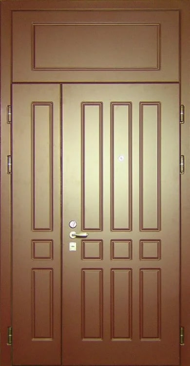 Полуторная входная дверь с верхней фрамугой №2 — это оптимальное решение для тех, кто ищет функциональность и эстетичность в одном продукте. Она отличается стильной отделкой из МДФ, которая устойчива к механическим повреждениям и сохраняет свой внешний вид на долгие годы. Конструкция двери включает прочный каркас из профильной трубы 50х25 мм и металл толщиной 2 мм, что обеспечивает высокую надежность. Наличие верхней фрамуги придает двери визуальную легкость и позволяет пропускать больше света, создавая уют в прихожей. Замки от надежных производителей, таких как Просам и Мосрентген, с тремя ригелями гарантируют высокий уровень безопасности. Для дополнительной кастомизации можно добавить стеклопакет, зеркало или кованые элементы, а также установить видеодомофон для контроля доступа. Полуторная входная дверь с верхней фрамугой №2 от производителя: быстрое изготовление и монтаж в Пушкино, индивидуальные размеры, широкий выбор материалов и фурнитуры, официальная гарантия до 10 лет.