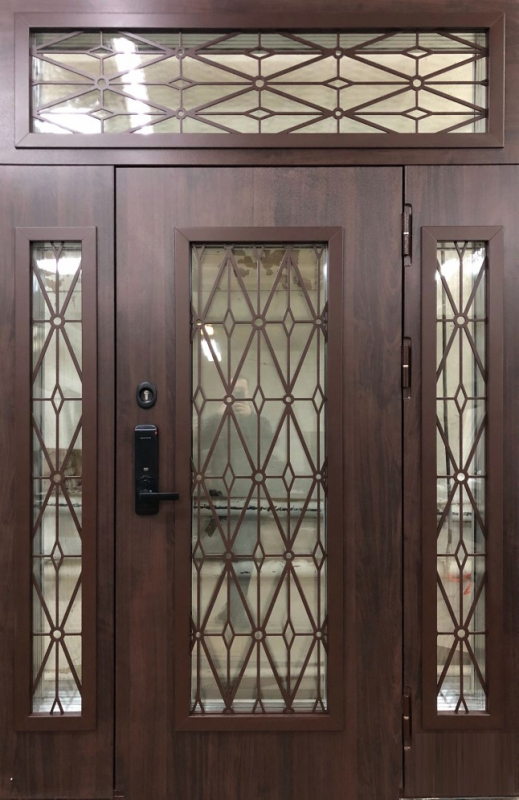 Входная дверь с декоративным рисунком и фрамугой №8 сочетает в себе элегантность и надёжность. Внешняя и внутренняя отделка из панелей МДФ с ПВХ покрытием обеспечивают долговечность и лёгкость в уходе, сохраняя стойкость к внешним воздействиям и механическим повреждениям. Каркас из профильной трубы 50x25 мм и лист металла толщиной 2 мм придают двери прочность, а ребра жесткости из труб 40x25 мм усиливают её устойчивость. Несмотря на отсутствие терморазрыва, конструкция двери с двумя контурами уплотнителей гарантирует отличную изоляцию от холода и шума. Такая дверь идеально подойдёт для установки в местах, где важен стильный внешний вид и безопасность. Входная дверь с декоративным рисунком и фрамугой №8 от производителя: быстрое изготовление и монтаж в Пушкино, индивидуальные размеры, широкий выбор материалов и фурнитуры, официальная гарантия до 10 лет.