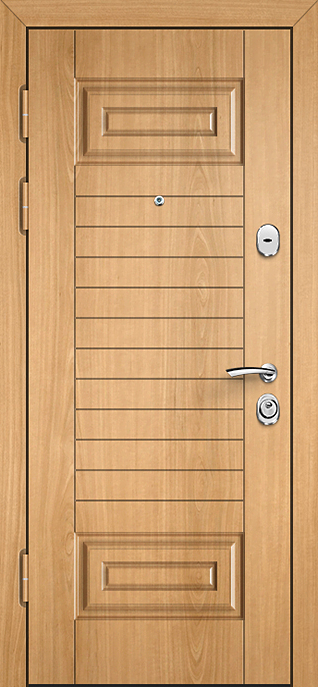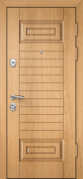 Металлическая конструкция с листом стали толщиной 2 мм и жёстким каркасом из профильной трубы формирует основу, которая не подведёт ни в квартире, ни в офисе. Два контура резинового уплотнителя делают закрывание плотным, уменьшая шум и сквозняки, а наличие блокираторов повышает уровень безопасности. Внешняя и внутренняя отделка выполнена из МДФ ПВХ — материал прочный, устойчивый к мелким повреждениям и сохраняющий аккуратный вид при ежедневной эксплуатации. В центре внимания здесь Железная дверь в квартиру №78, сочетающая надёжность стали и декоративные возможности панелей, которые можно комбинировать по вкусу. Комплект замков представлен сувальдным Просам и цилиндровым Мосрентген, при этом доступна замена на более сложные механизмы вплоть до биометрических систем. Конструкцию легко дополнить зеркалом, стеклопакетом, коваными элементами или видеодомофоном, превратив строгую дверь в удобный и технологичный элемент современного жилья. Железная дверь в квартиру №78 от производителя: быстрое изготовление и монтаж в Пушкино, индивидуальные размеры, широкий выбор материалов и фурнитуры, официальная гарантия до 10 лет.