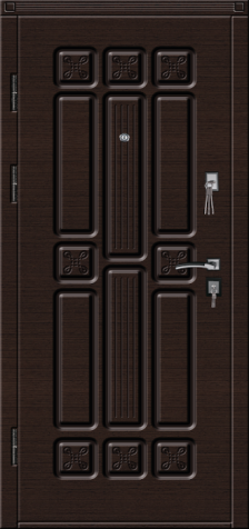 Входная дверь для квартиры чёрная №553 сразу выделяется строгим и уверенным характером. Глубокий тёмный оттенок придает конструкции солидность и универсальность — такая дверь одинаково уместна и в современном офисе, и в квартире, и в частном доме. Каркас выполнен из профильной трубы с металлическим листом толщиной 2 мм и усилен ребрами жесткости, что гарантирует высокую надежность и стойкость к взлому. С обеих сторон используется накладка МДФ, которая не только украшает полотно, но и обеспечивает стойкость к мелким повреждениям и износу, сохраняя аккуратный внешний вид долгие годы. Два контура уплотнения вместе с резиновыми вставками улучшают герметичность и комфорт при закрытии. Дверь гармонично сочетает практичность металла и элегантность декоративной отделки, создавая впечатление уверенности и защищенности уже с первого взгляда. Входная дверь для квартиры чёрная №553 от производителя: быстрое изготовление и монтаж в Пушкино, индивидуальные размеры, широкий выбор материалов и фурнитуры, официальная гарантия до 10 лет.