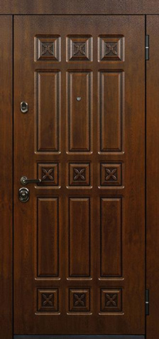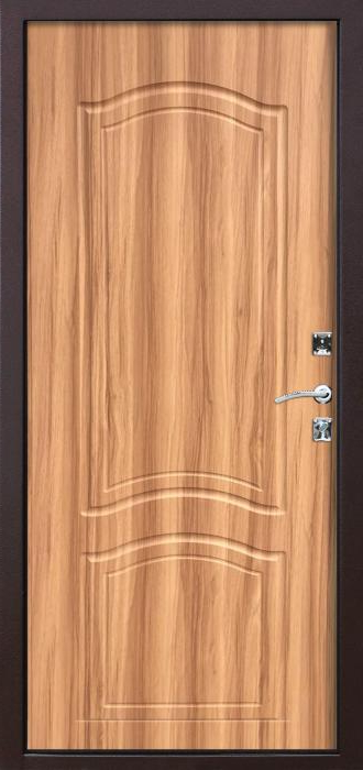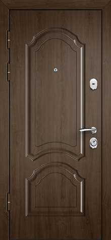 Элегантный ореховый оттенок всегда ассоциируется с надёжностью и уютом, а в сочетании с металлической основой он приобретает ещё и солидный характер. Панели МДФ с ПВХ-покрытием не только придают двери выразительный внешний вид, но и защищают её от случайных царапин, сохраняя поверхность безупречной на долгие годы. Дверь МДФ в частный дом цвета орех №531 создаёт гармоничный акцент на фасаде коттеджа или органично вписывается в интерьер квартиры и офиса. Каркас из профильной трубы и стальной лист толщиной 2 мм образуют прочную основу, усиленную рёбрами жёсткости. Для безопасности предусмотрены два замка российского производства: сувальдный Просам и цилиндровый Мосрентген, оба с надёжной системой ригелей. Дополнительно конструкцию можно разнообразить зеркалом, стеклопакетом или коваными элементами, подчеркнув индивидуальность дома и вкус его владельца. Дверь МДФ в частный дом цвета орех №531 от производителя: быстрое изготовление и монтаж в Пушкино, индивидуальные размеры, широкий выбор материалов и фурнитуры, официальная гарантия до 10 лет.