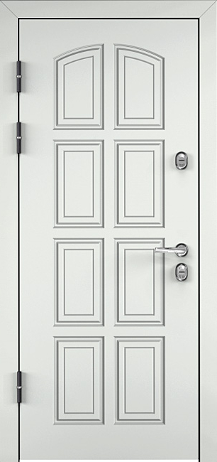 Белая входная дверь МДФ с вырезом "плитка" в центре №532