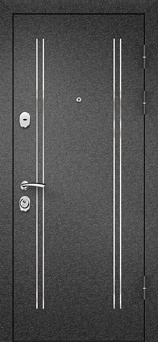 Дверь металлическая в порошке №59 — надежное решение для квартир, офисов и подъездов, где требуется прочная конструкция и аккуратный внешний вид. Снаружи используется молотковое напыление, которое не боится механических повреждений и долго сохраняет насыщенный цвет, а внутренняя поверхность отделана ламинатом, создающим ощущение уюта и подчеркивающим практичность модели. Каркас собран из профильной трубы 50х25 мм, усилен ребрами жесткости и листом стали толщиной 2 мм, что придает двери устойчивость к силовым нагрузкам. Дополнительную защиту обеспечивают два замка: верхний сувальдный «Просам» и нижний цилиндровый «Мосрентген», оба с тремя ригелями. Два контура резинового уплотнения помогают справляться со сквозняками, а при желании дверь можно укомплектовать шумо- и теплоизоляцией. Модель №59 легко адаптируется под любые требования: возможна комбинация отделок, установка зеркала, стеклопакета или декоративной ковки. Дверь металлическая в порошке №59 от производителя: быстрое изготовление и монтаж в Пушкино, индивидуальные размеры, широкий выбор материалов и фурнитуры, официальная гарантия до 10 лет.
