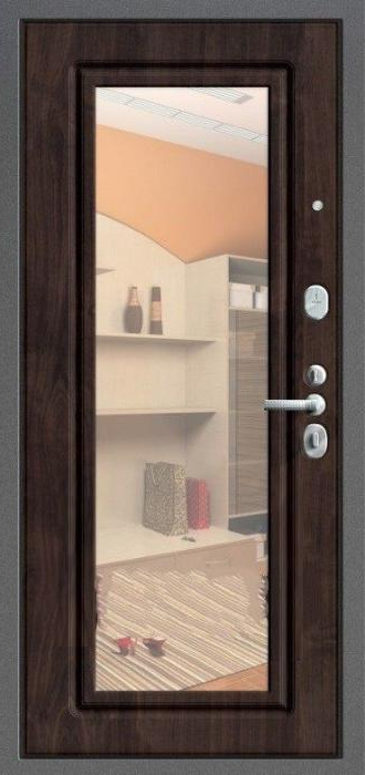Каркас из профильной трубы и стальной лист толщиной 2 мм обеспечивают прочность конструкции и устойчивость к взлому, а два контура уплотнителей защищают помещение от сквозняков и уличного шума. Входная дверь в квартиру с зеркалом №10 выделяется сочетанием практичного молоткового напыления снаружи и аккуратной плиты МДФ внутри. Такое покрытие не боится механических повреждений и перепадов температуры, долго сохраняя первоначальный вид. Зеркало на внутренней стороне делает прихожую светлее и визуально просторнее, заменяя полноценное настенное. Дополнительные блокираторы и система ребер жёсткости усиливают надежность. Возможность изготовления в любых размерах позволяет адаптировать модель под особенности квартиры, офиса или частного дома, сохранив баланс между эстетикой и безопасностью. Входная дверь в квартиру с зеркалом №10 от производителя: быстрое изготовление и монтаж в Пушкино, индивидуальные размеры, широкий выбор материалов и фурнитуры, официальная гарантия до 10 лет.