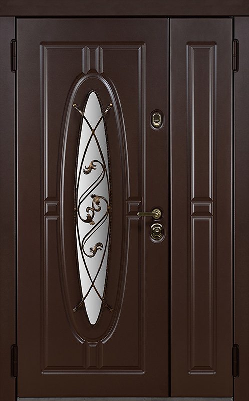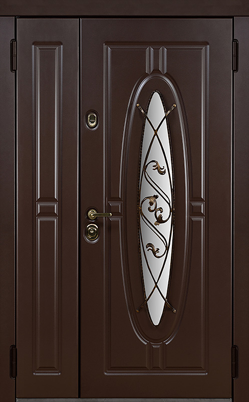 Двойная уличная дверь с овальным стеклом и художественной ковкой №14 — это уникальное сочетание функциональности и эстетики. Панели МДФ с ПВХ-покрытием, используемые как для внешней, так и для внутренней отделки, обладают высокой стойкостью к внешним воздействиям, сохраняя свой внешний вид на долгие годы. Внешний декор в виде художественной ковки придаёт двери особый шарм, подчеркивая её стиль и индивидуальность. Двойная уличная дверь с овальным стеклом и художественной ковкой №14 от производителя: быстрое изготовление и монтаж в Пушкино, индивидуальные размеры, широкий выбор материалов и фурнитуры, официальная гарантия до 10 лет.