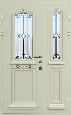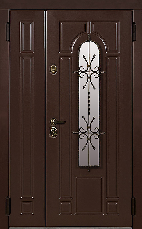 Эта металлическая двухстворчатая дверь с арочным стеклопакетом №15 представляет собой идеальный баланс между эстетикой и прочностью. Арочное стекло добавляет в её дизайн утончённость, а ковка в декоре придаёт изысканный, но в то же время крепкий и надёжный вид. Плита МДФ, используемая как для внешней, так и для внутренней отделки, не только сохраняет прекрасный внешний вид, но и устойчива к механическим повреждениям. Металлическая двухстворчатая дверь с арочным стеклопакетом №15 от производителя: быстрое изготовление и монтаж в Пушкино, индивидуальные размеры, широкий выбор материалов и фурнитуры, официальная гарантия до 10 лет.
