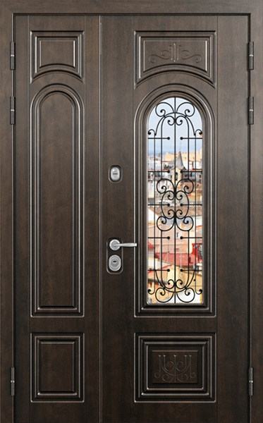 Двупольная стальная дверь со стеклопакетом и кованым узором №24 станет отличным выбором для тех, кто ценит не только безопасность, но и стиль. Внешняя и внутренняя отделка выполнены из МДФ, что придает двери элегантный и современный вид, а также обеспечивает высокую устойчивость к механическим повреждениям и износу. Стеклопакет и кованые элементы добавляют изысканности и уникальности, при этом сохраняя прочность конструкции. Двупольная стальная дверь со стеклопакетом и кованым узором №24 от производителя: быстрое изготовление и монтаж в Пушкино, индивидуальные размеры, широкий выбор материалов и фурнитуры, официальная гарантия до 10 лет.
