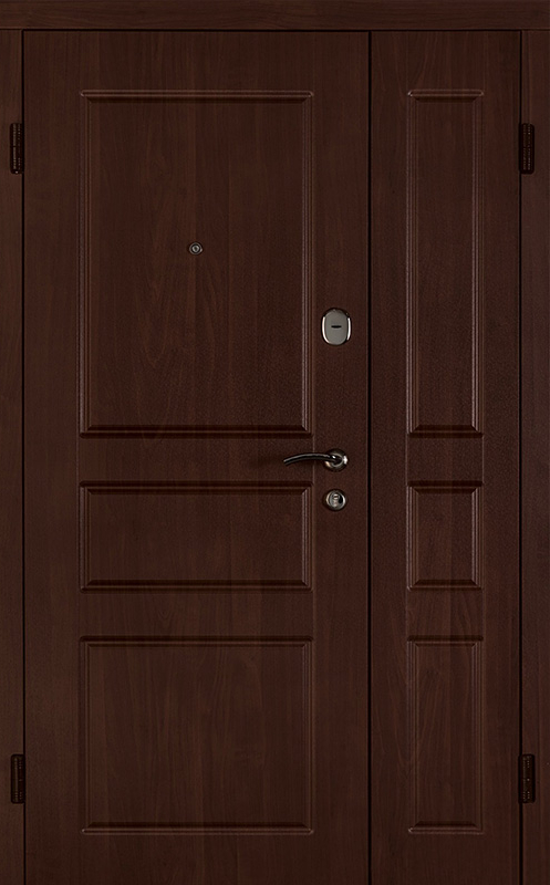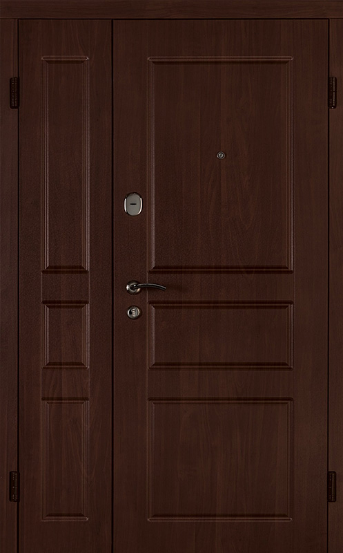 Коричневая входная полуторная дверь с филенчатой створкой №4 – это надежное и стильное решение для вашего дома или офиса. Внешняя и внутренняя отделка из МДФ с ПВХ обеспечивает долговечность и устойчивость к повреждениям, сохраняя при этом элегантный внешний вид. Прочные материалы конструкции, такие как профильная труба 50х25 мм и лист металла толщиной 2 мм, гарантируют стабильность и безопасность. Ребра жесткости из профильных труб 40х25 мм усиливают дверное полотно, а уплотнение с двумя контурами надежно защищает от внешних факторов. Несмотря на отсутствие терморазрыва, в двери реализованы терморазрывы в коробке и полотне, что помогает улучшить теплоизоляцию. Возможность выбора дополнительных опций, таких как шумоизоляция, делает эту дверь универсальной для различных условий эксплуатации. Коричневая входная полуторная дверь с филенчатой створкой №4 от производителя: быстрое изготовление и монтаж в Пушкино, индивидуальные размеры, широкий выбор материалов и фурнитуры, официальная гарантия до 10 лет.