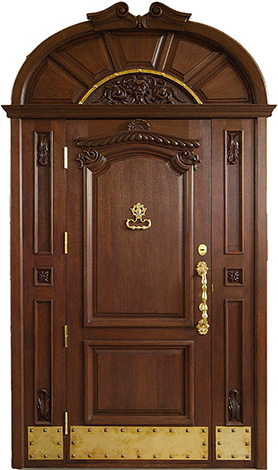 Эксклюзивная глянцевая дверь в частный дом с нестандартной фрезеровкой №24