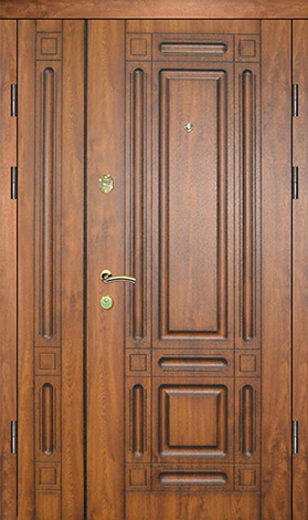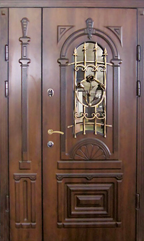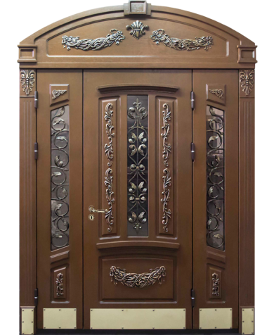Входная металлическая дверь для частного дома со стеклом и ковкой №29