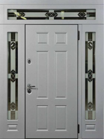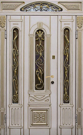 Входная дверь со стеклопакетом и патиной для загородного дома белая №29