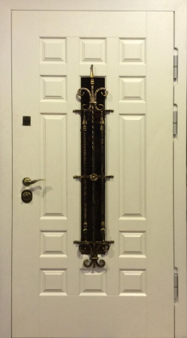 Эксклюзивная глянцевая дверь в частный дом с нестандартной фрезеровкой №24