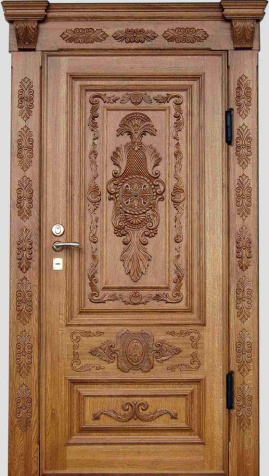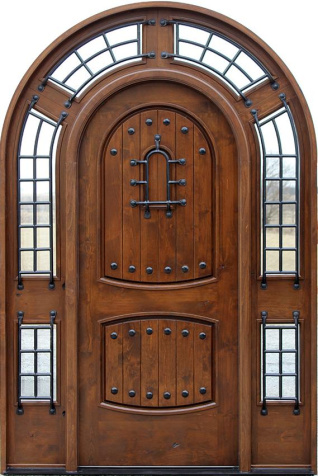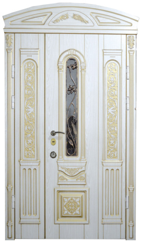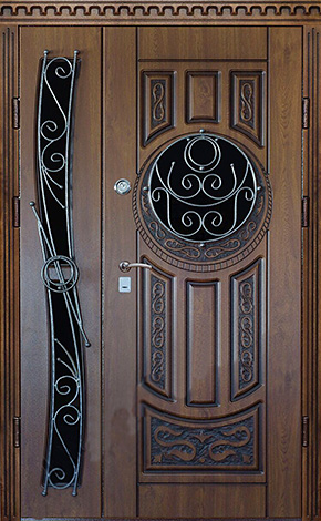 Входная металлическая дверь для частного дома со стеклом и ковкой №29