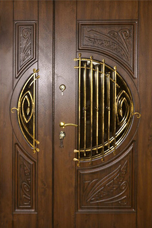 Эксклюзивная глянцевая дверь в частный дом с нестандартной фрезеровкой №24
