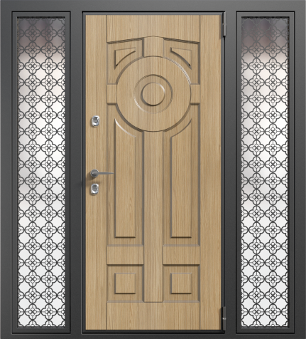 Герметичная входная дверь для частного дома со стеклом и ковкой №11 сочетает в себе надёжность и эстетическую привлекательность. Внешняя отделка из МДФ ПВХ придаёт двери современный и изысканный вид, а её внутренняя отделка гарантирует долговечность и лёгкость в уходе. Каркас из профильной трубы 50x25 мм и лист металла толщиной 2 мм обеспечивают прочность, а дополнительные элементы ковки добавляют стилевого шарма. Несмотря на отсутствие терморазрыва, эта модель эффективно справляется с атмосферными воздействиями благодаря качественному уплотнению с двумя контурами. Прочные замки с блокираторами обеспечивают необходимую безопасность. Эта дверь подойдёт как для частных домов, так и для тех, кто ищет функциональное решение с привлекательным дизайном. Герметичная входная дверь для частного дома со стеклом и ковкой №11 от производителя: быстрое изготовление и монтаж в Пушкино, индивидуальные размеры, широкий выбор материалов и фурнитуры, официальная гарантия до 10 лет.